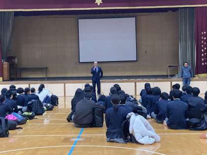 3年生は、明日からの私立高校入学試験に向けて、5限、体育館で前日諸注意を行いました。「落ち着いて入試に臨むため、まず丁寧に受験番号と名前を書く」が、校長先生からのアドバイスです。試験当日、慌てることのないよう、前日のうちにしっかり準備をしておきましょう。