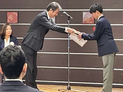 文中「問題の理解を深めるために学び、意識を高めることも、問題解決の第一歩です。・・・ニュースでやっていたら話してみたり、身近な人々とどうすれば解決できるか話し合ったり、北方領土に関する動画やSNSを送ってみたりと、色々な方法があります。」と、自分事として出来ることを考えている点など、学ぶことの多い作文です。本校生徒を含む4名の表彰が執り行われた式典は、大変厳粛な式典でした。