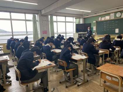 気温差が激しい毎日ですが、登校するとすぐ、まっすぐ教室に向かいテストに備える生徒たちです。これまでの学習の成果を発揮し、最後までねばり強く取り組んでください。(写真は1日目の様子)