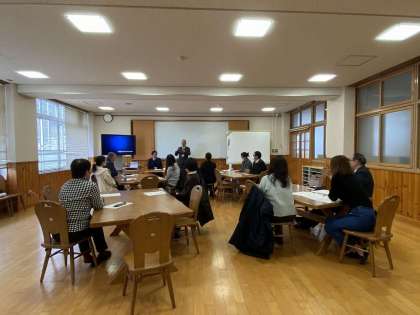 2月27日(火)、地生連主催「家庭地域教育学級」を音羽中学校で実施しました。今回の研修テーマはSNSです。「スマートフォン・SNSトラブル〜大人の視点と子どもの視点〜」というタイトルで、生徒指導課 寺岡浩紀氏より、講演いただきました。「SNSの種類」「スマホ・SNSトラブル」「大人が認知しておきたいこと」「おわりに」の順に、具体的でわかりやすいお話に、時間の経つのがあっという間でした。誤解により生じるトラブルが、以前より見えにくくなっていることや、先入観にとらわれず視点を変えてみることの大切さ、一方的な押付けでなく子どもとの話し合いを重ねることが必要等、今後のヒントになる内容で、テーブルごとの意見交流も盛り上がり、楽しいひとときでした。