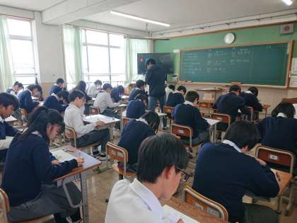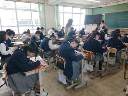 今日は午後から全学年で、振り返りテストが行われました。1年生にとっては成績に関わる初めてのテストです。少し緊張した様子でした。2・3年生は慣れたもので、どの学級でも落ち着いて取り組むことができていました。