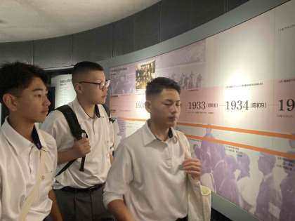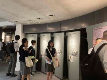 原爆資料館で平和学習を行いました。メモを取りながら進みます。