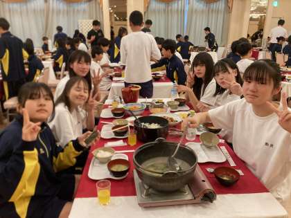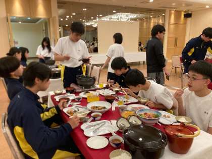 朝ごはんの様子です。今日の午前中はペーロン体験があります。たくさん食べてエネルギーをチャージしてください。