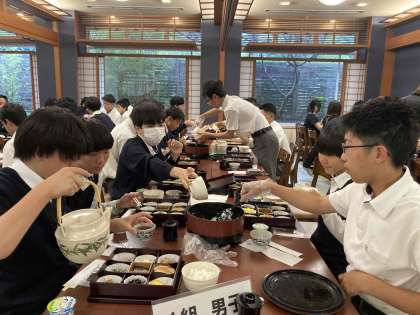 おはようございます。今日も爽やかな朝です。三日間の行程を好天に恵まれ、大変うれしく思います。今日は太宰府天満宮に行く予定です。たくさん食べて元気に活動してください。