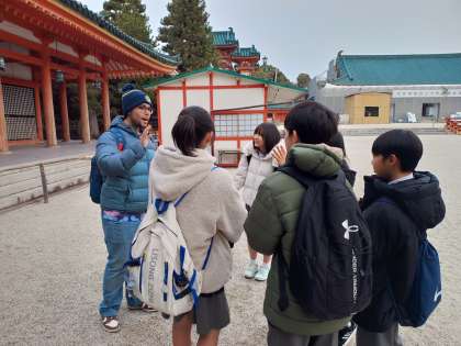 平安神宮についたグループは早速インタビューを開始しています。観光都市京都には世界各国から多くの人が訪れます。マスターした英語は通じるのでしょうか。ちょっとドキドキしますね。