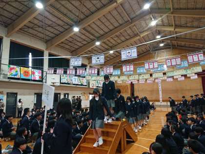 楽しかった送る会もあっという間に時間が経ち、終わりを迎えました。在校生の出し物に感激し、涙を流す3年生も多くみられました。退場時には後輩に目配せをしたり手を振ったりして、体育館を後にする3年生の姿が印象的でした。素晴らしい会をありがとうございました。