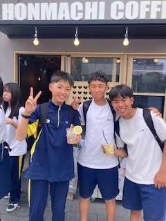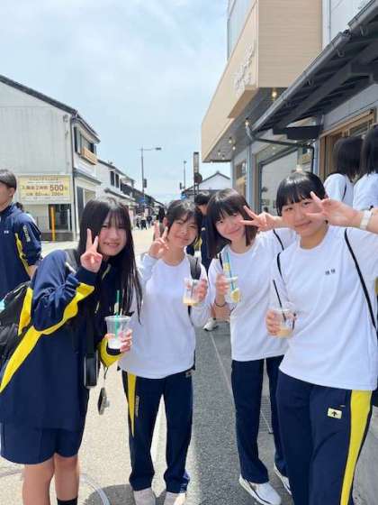 昼食も食べたはずですが…。犬山城の城下町で食べ歩きを楽しむ生徒たちの姿が多数報告されています。現地の気温は29度!アイスや冷たい飲み物で涼をとる生徒が多いようです。牛タン、モナカ、イチゴ飴も人気のようですね。