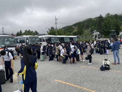 修学旅行団は18時30分過ぎに無事白馬に到着しています。長いバス移動お疲れさまでした。この後は仲間との夕食とお風呂、そしてレクリエーションですね。