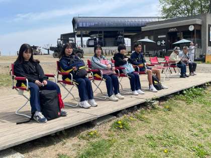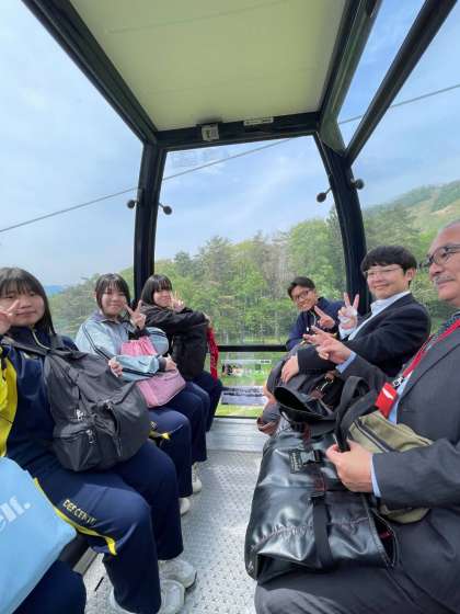 ラフティングをしない生徒は岩岳に上っています。山頂にはまだ雪が残っているのですね。絶景です!