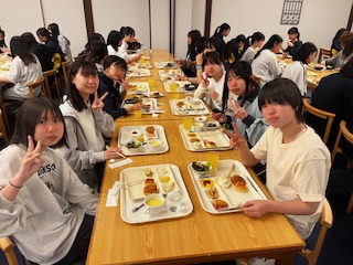 女子も体験学習に向けてしっかり食べています。