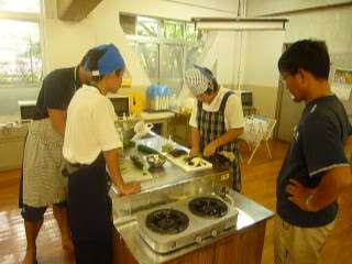 学校で採れたゴーヤ、きゅうり、なすびを使ってのそうめん作り、猛暑にふさわしい食事です。