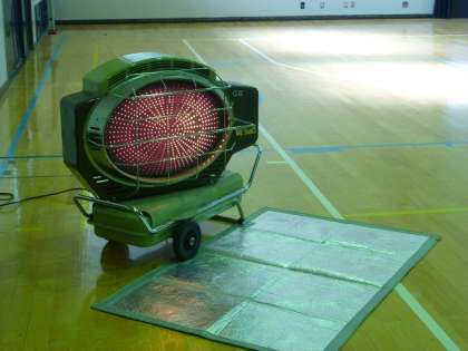 もう一枚の写真は,体育館にある大型暖房器具(2つあります)です。