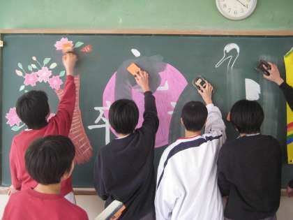 教室内のペンキ塗りから始まり、廊下の壁の拭き掃除をしました。