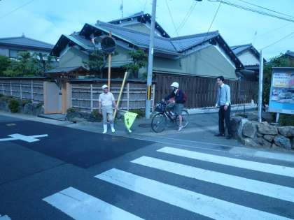 PTA地域委員の方々も定期的に、街頭指導してくださっています。
