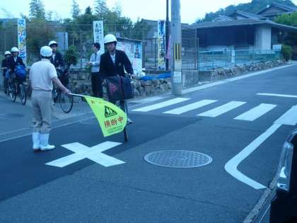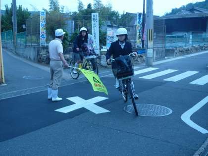 小金塚から登校してくる生徒への「自転車安全指導」の様子です。