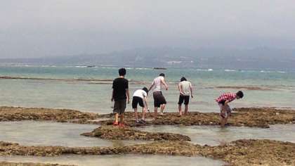 伊江ビーチの磯で、海辺の小動物の観察です。