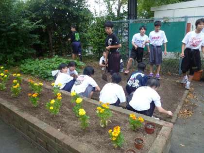 普段は、育成学級さんがお世話してくださっている花壇を、バスケットボール女子部員が練習の合間にやってくれました。