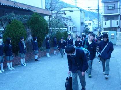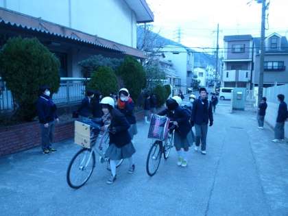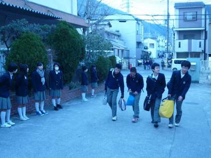 7日から始まった「挨拶運動」の様子です。寒い中、本部役員と3年生評議員が頑張っています。