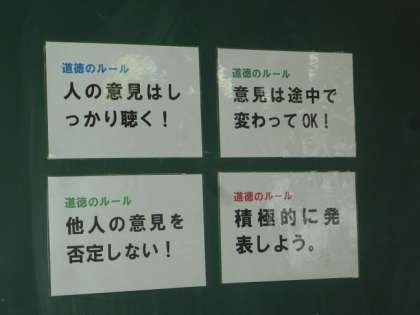 また、1年生は特に「道徳授業の心構え4項目」を確認してから始めました。