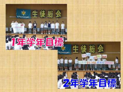 各学年評議会が中心に「学年目標」を発表してくれました。3月のゴールを目指して、学年が一つになって目標達成のために頑張ってください。