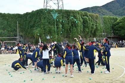こちらは色別種目の玉入れの様子です。おどろきの記録も飛び出しました。