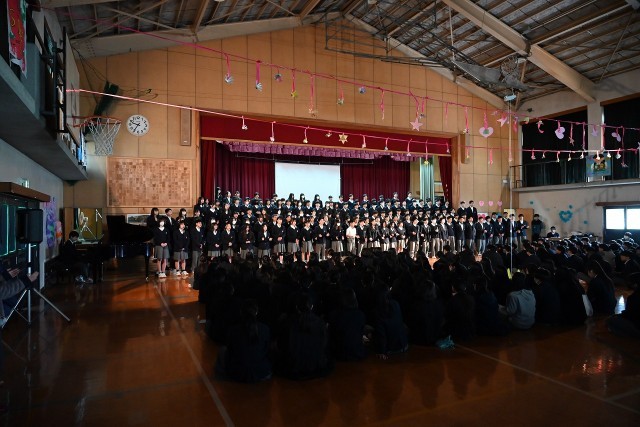 本日1~2時間目に3年生を送る会を実施しました。卒業式には在校生は代表制とのみが参加しますので、全校生徒が一堂に会す最後の機会です。各学年から3年生に対して趣向を凝らした出し物があり、最後には3年生から在校生に思いのこもったメッセージがありました。卒業式まであと2日、最高の思い出は作れたでしょうか。