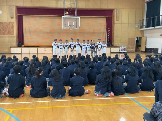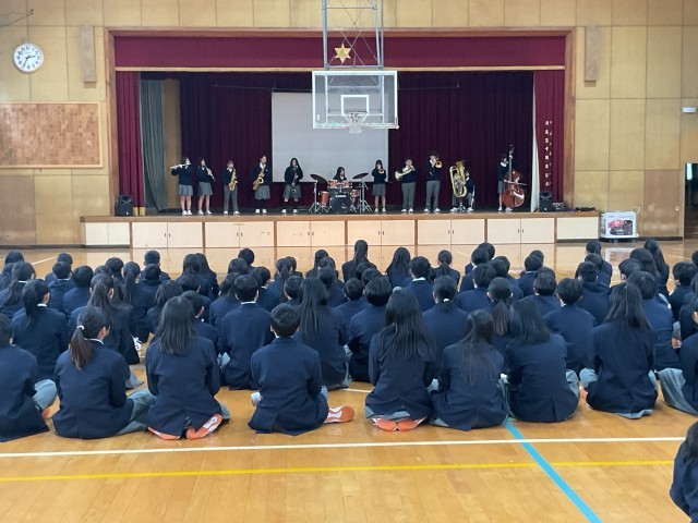 生徒会入会式では、音羽中学校の「生徒心得」の説明、生徒会や各委員会の方針説明、プレゼント贈呈がありました。