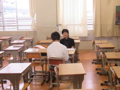 担任の先生と生徒との懇談です。この2か月余りの学校生活の振り返りや今後のことについてコミュニケーションをとります。