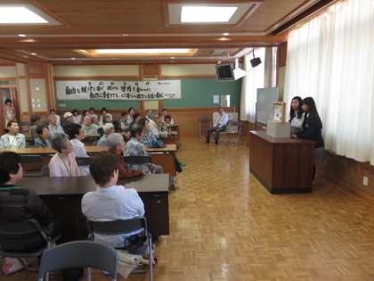 本日,鏡山学区の健康すこやか学級にて家庭科部が読み聞かせをおこないました。
