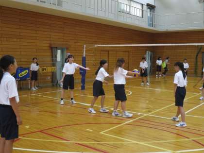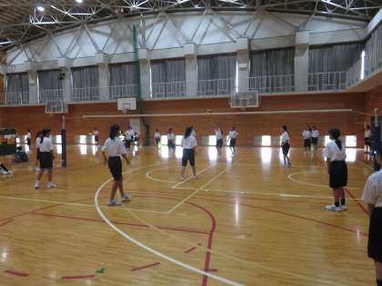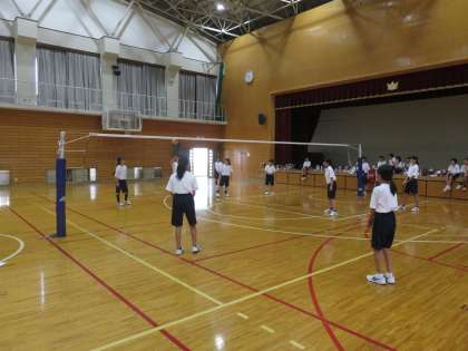 女子は体育館でバレーボールです。