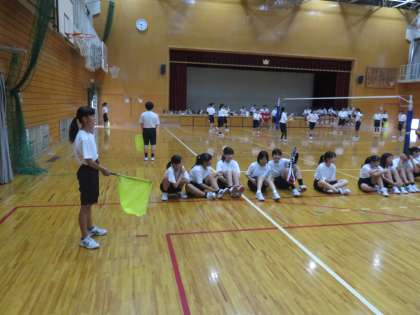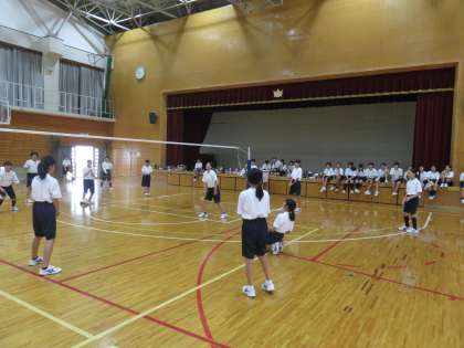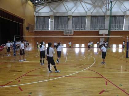 朝から気温が上昇し,体育館もかなり蒸し暑い状態ですが,元気いっぱいに球技大会を楽しんでいます。