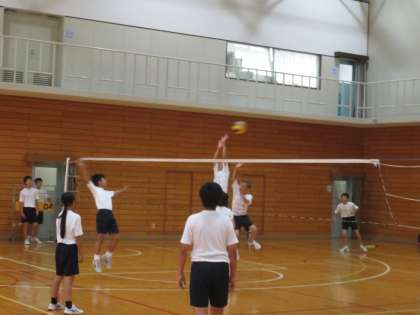 2年生はグランド,体育館ともに男女混合です。男女で協力して球技大会を楽しんでいます。