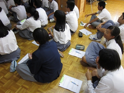 2年生は「在日韓国・朝鮮人問題について」学習してます。はじめに「人に言われて元気のでる言葉」と「人に言われてイヤだと思う言葉」・「人と人をつなぐ言葉」などを考えました。