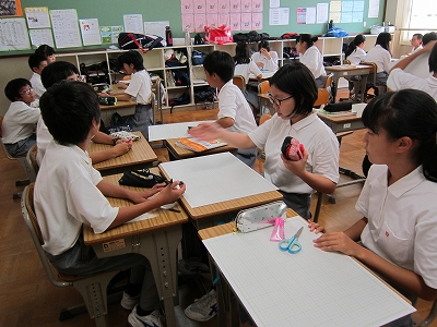 1年生は、中学校で初めての文化祭、学年劇・貼り絵の取り組みを行っています。どんな作品ができるか?楽しみです。