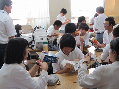 2年生は、牛乳パックで家具作り。英語でインタビュー・劇と様々な取り組みをおこないます。昨年度の経験を活かしてください。