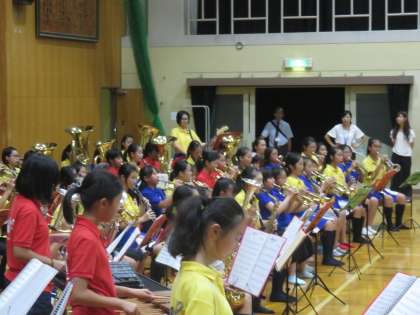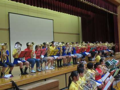 9日(土)の夕方6時より吹奏楽とふれあいの夕べが陵ヶ岡小学校にておこなわれました。吹奏楽部は,まず鏡山小学校と陵ヶ岡小学校と合同バンドを組み「テキーラ」を披露しました。