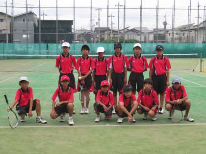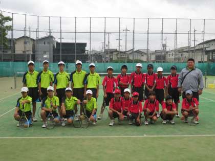 男子ソフトテニス部が団体の予選リーグに登場しました。断続的な雨の中,見事に決勝トーナメント出場を決定しました。