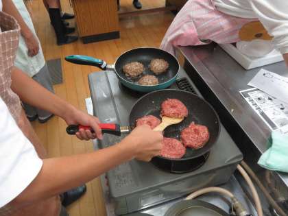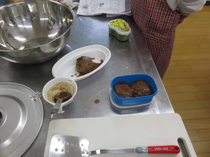 できあがったハンバーグは昼食と一緒に食べるようです。