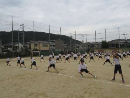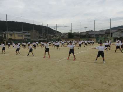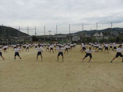 本日,1・2限に1年生学年体育が行われ,学年演技を1年生全員であわせてみました。