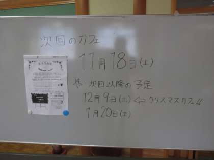 次回のカフェは11月18日(土)です。ご来場お待ちしております。