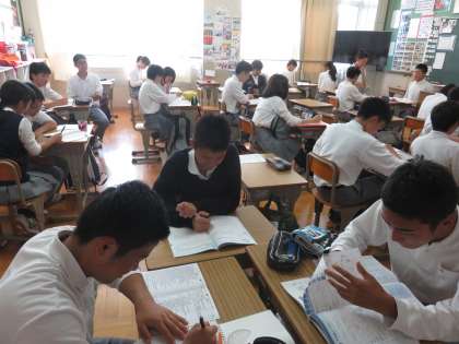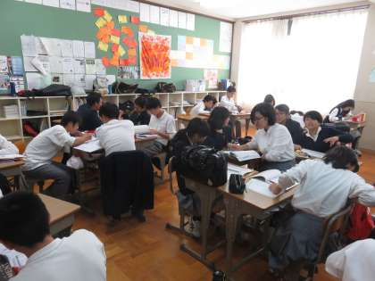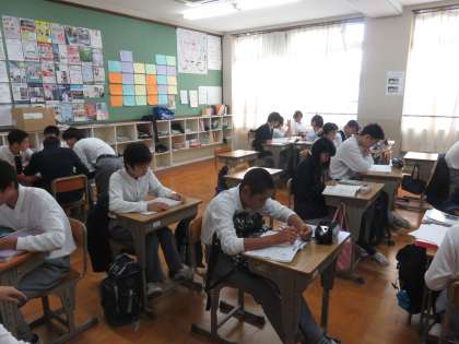 3年生の明日の時間割は英語・理科・数学の3教科です。