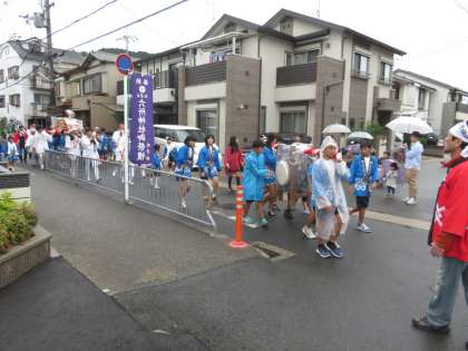 花山中学校の生徒も神輿の巡行に参加しました。雨の中,お疲れ様でした。