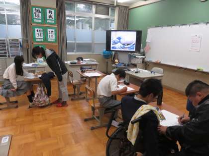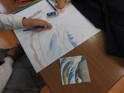 6組で葛飾北斎の富岳三十六景の貼り絵に挑戦しています。