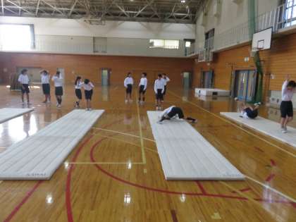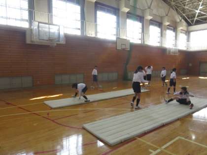 開脚前転,開脚後転を練習しています。