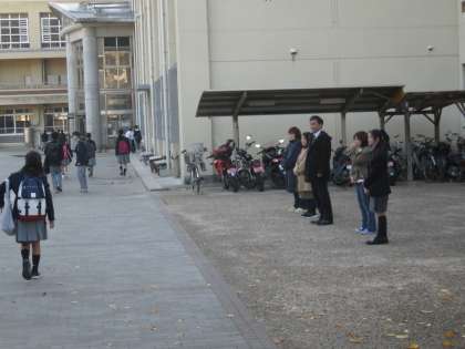 めっきり,冷え込みが厳しくなり,1日の気温差が大きくなる季節なりました。PTAと生徒会による朝のあいさつです。