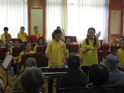 吹奏楽部は先日のフェアウェルコンサートで3年生が引退しましたので,1・2年生の新体制として初めての演奏です。