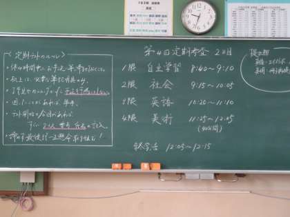 1年生3日目の時間割は数学・技家・保体の予定になっています。