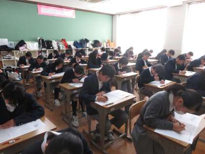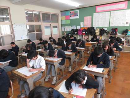 2年生は,本日1時間目に英語の聞き取りテストから始まりました。放送の一音を聞き逃すまいと,真剣な表情です。