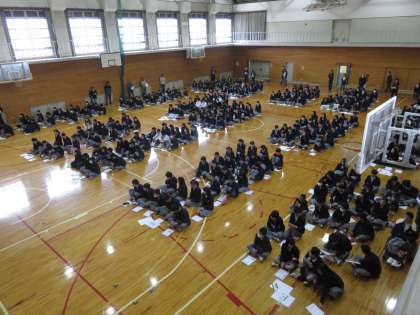 本日4限に収穫祭に向けて,全校道徳(活動)をおこないました。