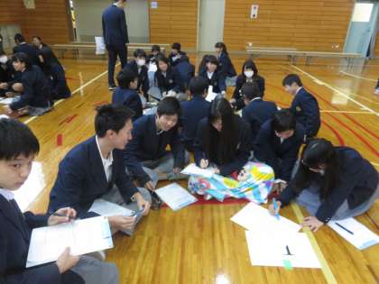 今回の全校道徳(活動)では,「おやさい」「たてわり」などの頭文字からあいうえお作文を作る作業を縦割りグループでおこなうことで考えてみました。